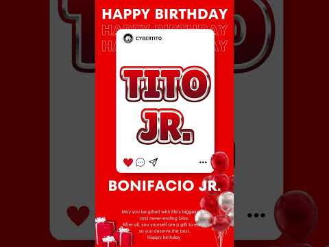 Tito Jr., Happy Birthday! May you be gifted with life’s biggest joys and never-ending bliss. #happybirthday #birthday #greetings #CYBERTITO #cybertitojj CYBERTITO – the uncle who loves information technology. From tech tips, web tutorials, poems, OFW life, BPO work, travels, and Catholicism, there's always something new. Explore with CYBERTITO! Subscribe for more videos about Art, Life, Tutorial, Travel, and Catholicism! https://bit.ly/CYBERTITOYouTubeChannel Follow CYBERTITO on social media Facebook Fan Page: https://www.facebook.com/cybertitojj Facebook Profile: https://www.facebook.com/JosephRaymundEvangelistaEnriquez TikTok: https://www.tiktok.com/@cybertitojj Visit CYBERTITO website https://cybertito.com/ Copyright (C) CYBERTITO – All Rights Reserved.